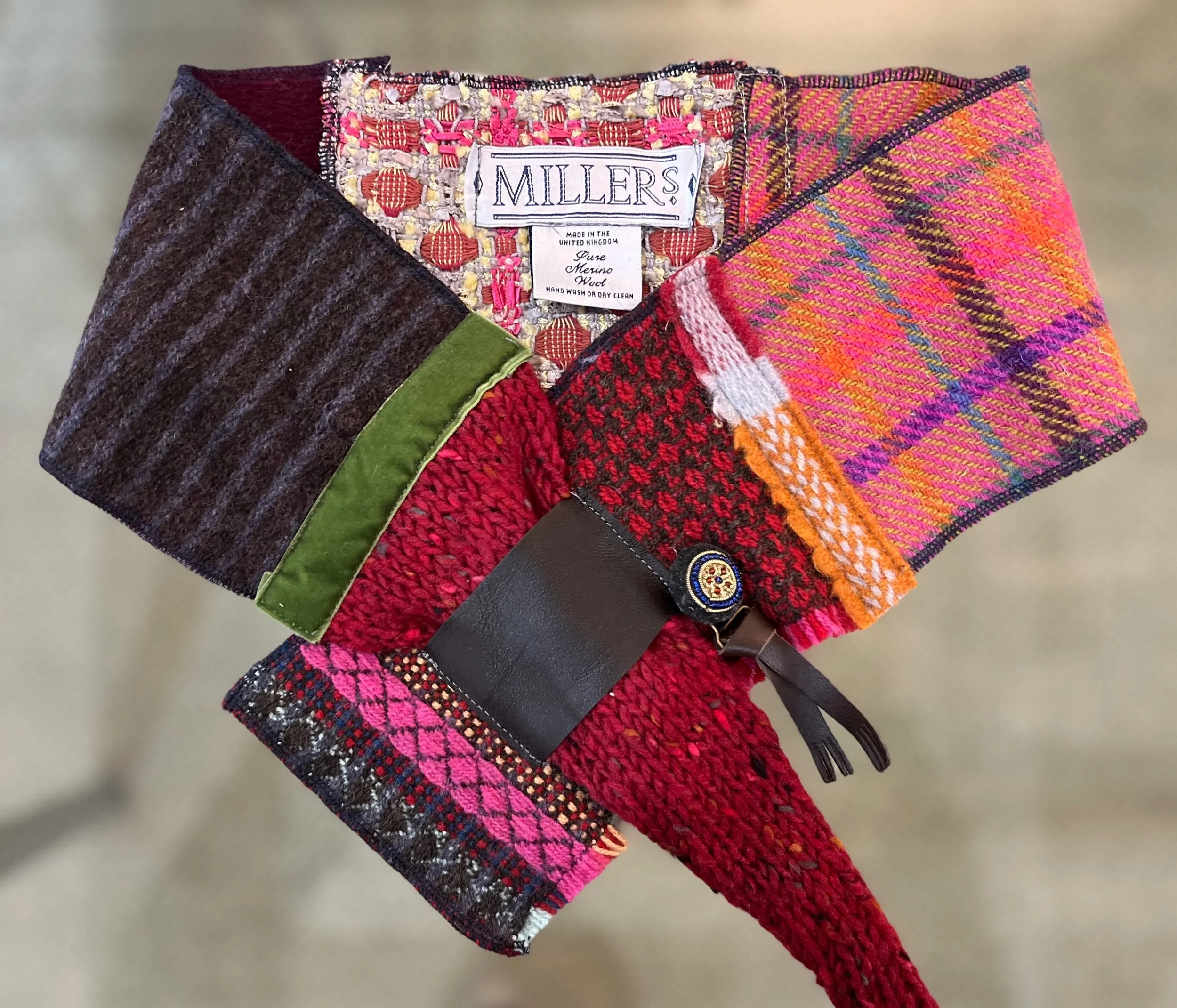 Shop › Highlander scarf 1 Highlander scarf 1 £85.00 Totally unique scarf made from Harris tweed, leather, Linton tweed, cashmere and matching trimmings. Totally unique scarf made from Harris tweed, leather, Linton tweed, cashmere and matching trimmings. Add To Cart Added!